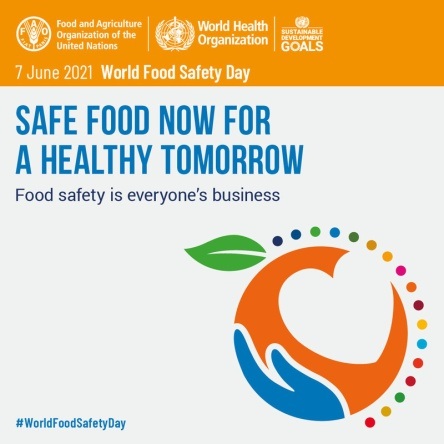 Ziua Mondială a Siguranței Alimentelor marcată la 7 iunie 2021 își propune să atragă atenția și să inspire acțiuni care să ajute la prevenirea, detectarea și gestionarea riscurilor alimentare, contribuind la securitatea alimentară, sănătatea umană, prosperitatea economică, agricultură, acces pe piață, turism și dezvoltare durabilă.